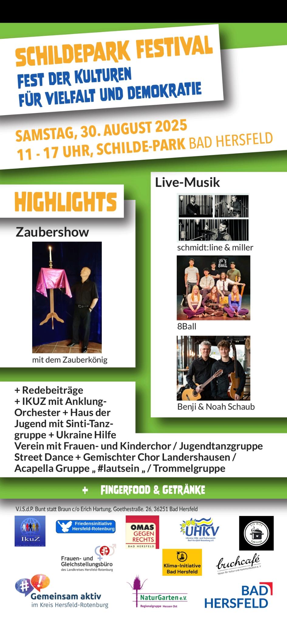 Es wird zum Einen Musik und Darbietungen, Essen und Getränke verschiedenster Art geben, zum Anderen auch Redebeiträge verschiedener zivilgesellschaftlicher Gruppen, der Bürgermeisterin und einiger Lokalpolitiker.
